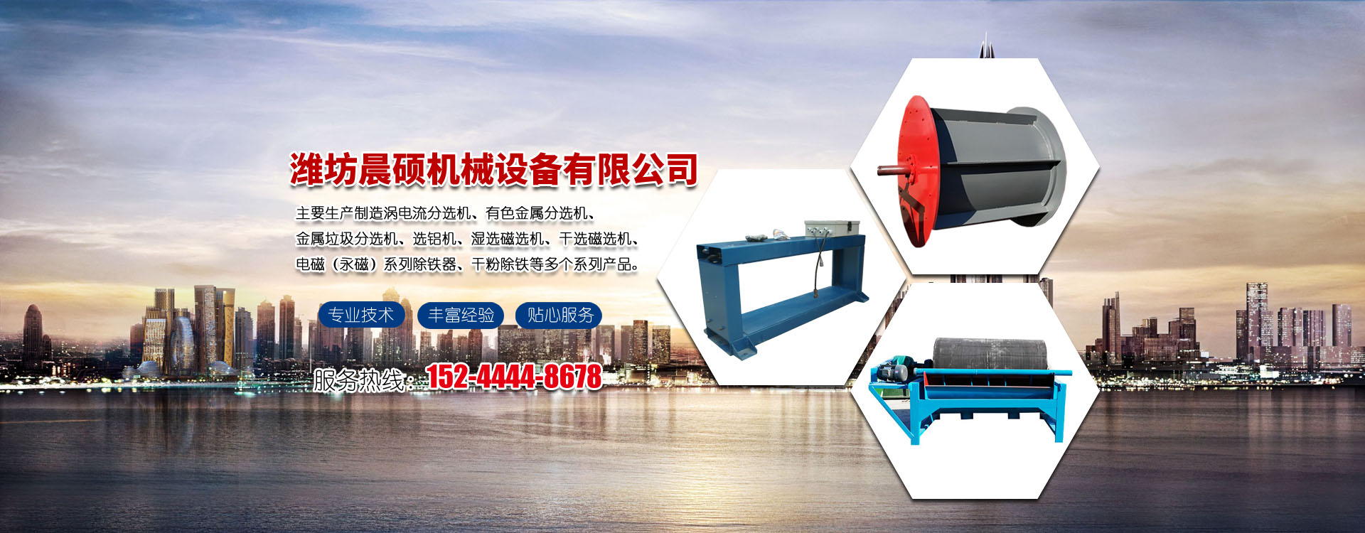 主要生产制造涡电流分选机、有色金属分选机、金属垃圾分选机、选铝机、湿选磁选机、干选磁选机、电磁(永磁)系列除铁器、干粉除铁等多个系列产品。